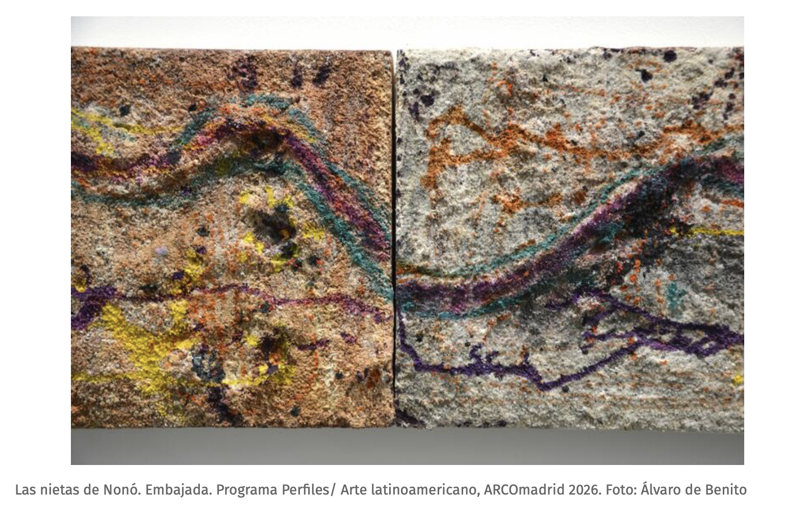 La galería Embajada (Puerto Rico), que participó en la sección ‘Perfiles | Arte Latinoamericano, comisariada por José Esparza Chong Cuy, presentó por primera vez en un contexto ferial la obra de Las Nietas de Nonó (Embajada, Puerto Rico). Este dúo afrodiaspórico formado por mulowayi y mapenzi, cuya práctica combina performance, archivo personal, materiales orgánicos e instalación, utiliza su trabajo para abordar procesos de expropiación, violencia colonial y justicia ambiental.